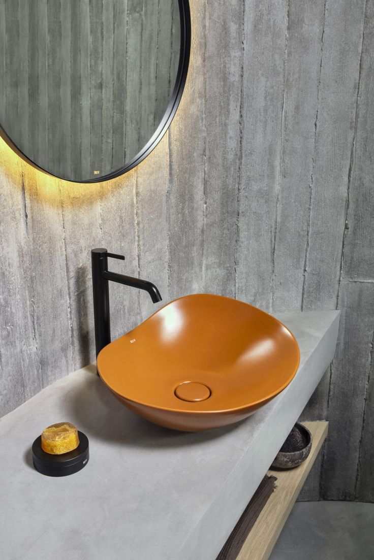 Make a bold statement with the Ohtake basin by Roca. This vibrant orange design adds a creative and stylish touch to any bathroom, perfectly complemented by its organic form and matte finish. Discover how Ohtake can transform your space with its unique blend of artistry and functionality.
